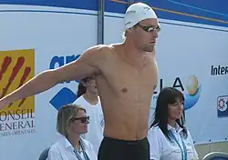 Camille Lacourt (French pronunciation: [kamij lakuʁ]; born 22 April 1985) is a retired French competitive swimmer and backstroke specialist. He won the 50 metre backstroke at three consecutive world championships (2013 Barcelona, 2015 Kazan, and 2017 Budapest). He competed at the 2012 Olympics in the 100 metre backstroke and finished fourth. In the 2016 Rio Olympics, he finished fifth in the same event.