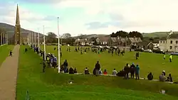 Cammag was gradually supplanted by hockey and hockey clubs were formed across the island in the early years of the twentieth century.[13] However, games of cammag were played again in 1937 as part of Hollantide Night festivities held by Aeglagh Vannin.[14] In July 1938, a camogie exhibition match was played in Noble's Park, Douglas as part of the Celtic Congress being held on the island. The match drew comparisons with cammag in the press.[15] In 1979, a composite rules shinty–hurling international match between Scotland and Ireland was played at Port-e-Chee, Douglas, as part of the island's millennium celebrations. Ireland won 7-3.[16]
