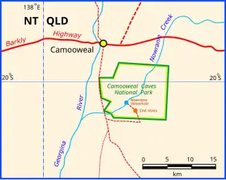 - ^ "Camooweal Caves National Park topographic map, elevation, relief". topographic-map.com. Retrieved 14 February 2022.