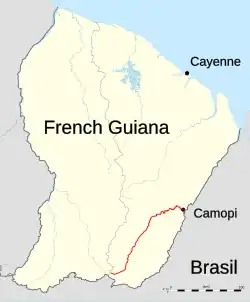 The Camopi (French pronunciation: [kamɔpi]) is a 244 kilometres (152 mi) long river in French Guiana.[1] It rises in the south of the country, flowing northeast until it reaches the river Oyapock at the town of Camopi, on the border with Brazil.