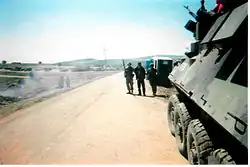 By December 2017, the camp housed the First Battalion of the KSF's Rapid Reaction Brigade.[1] The first three Serb members of the KSF were accepted in 2009 from the previous KPC and joined the First Rapid Reaction Battalion. The Second Battalion was located at the "NATO Soldier" barracks in Istog, a former Spanish KFOR base, and the third battalion seemingly in Mitrovica, Kosovo.