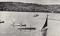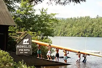 Camp Mowglis is a nonprofit residential camp for boys. Founded in 1903, it is one of the oldest summer camps in the United States. It is located in Hebron, New Hampshire, on the shores of Newfound Lake. It's owned by the nonprofit Holt Elwell Memorial Foundation.[1] Mowglis was founded by Elizabeth Ford Holt and the camp includes some themes from Rudyard Kipling's The Jungle Book.[2] The camp was listed on the National Register of Historic Places in 2019.