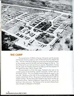 Camp Savage is the former site of the U.S. Military Intelligence Service language school operating during World War II. The school itself was established in San Francisco, but was moved in 1942 to Savage, Minnesota. The purpose of the school was to teach the Japanese language to military personnel and civilians involved in the war effort. This skill could then be used to interrogate prisoners of war, translate captured documents, serve as interpreters with Japanese civilians, and aid in the American war effort. The program was later moved to Fort Snelling in St. Paul, Minnesota.[1]