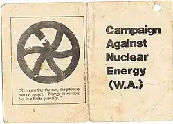 - ^ Kearns, Barbara (5 May 2021). "Stepping Out For Peace: A History of the Campaign Against Nuclear Energy in Australia CANE and People for Nuclear Disarmament PND (WA)". The Commons Social Change Library. Retrieved 5 March 2025.