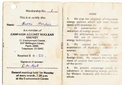 CANE was set up under the aegis of FOE after a meeting at University of Western Australia in late 1975. John Carlin, Barrie Machin, Michael Thomas and Peter Brotherton were present. Ken Strahan was an important part of the group and member of FOE. Barrie Machin was the first enrolled member of CANE and still has the founding membership card. Mike Thomas was the first Chairman. R. M. Hart's signature is on this card as a witness. Barrie Machin was Chairman of the movement from 1977–1978. This can be verified by checking the West Australian Newspapers for the period. There are many letters to the editor from the Chairman. Other Perth media archives, like the ABC, Channel Seven and Nine and Radio Stations carry records of interviews and appearances. Important eyewitnesses of the early days of CANE would include Bill Hare, Andrew Masterson, the novelist and John Hallam (who joined CANE from the Australia Party, John is still very active on nuclear issues with FOE, Kim Doohan, Peter Garrett, Professor Ian Clark, Robyn Juniper, ex-Minister of Aboriginal Affairs- Judyth Watson, Kingley Palmer ex-head of Institute of Aboriginal Studies in Canberra. Under Dr. Machin's guidance the first Hiroshima Day was held this coincided with his Hiroshima Exhibition at the University of WA. Bill Hare, who later became active in ACF and Greenpeace, was also part of the team headed by Barrie Machin. John Hallam was also a key member in this period, Andrew Masterson was a very valuable and young contributor. Peter Brotherton of FOE played a key role in all activities and advice. Barrie Machin and Kim Doohan with one other person broadcast Alternative News on FM 6NR for six months at Western Australian Institute of Technology now Curtin University. It is unfortunate that some of these facts of history have been ignored in a recent account of CANE called 'Stepping Out' the authors of which have admitted they did not check the archives and based their book on limited interviewing, which excluded many key personnel, activists and witnesses. They argue that theirs is a postmodernist interpretation. They did not interview Barrie Machin, who was relegated to the status of a volunteer, nor does it seem to be the case that they interviewed other key founders and later chairperson-Peter Kaldor. Paul Keating was at the Labour Party conference and could have been interviewed as well. Many of the facts of CANE in this book and in the previous Wikipedia content for CANE were unverifiable. There are now some verifiable sources in this entry. Later CANE Chairpersons included Zoe Sofoulis and Peter Kaldor followed by Annabelle Newbury, David Worth and Louise Duxbury. An early but minor member at the time included Jo Vallentine who was later elected to parliament in 1984 as a Nuclear Disarmament Party candidate.