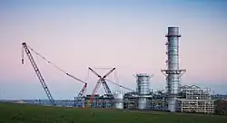 The Pembroke Power Station was completed in 1968 for CEGB and together with Marchwood, near Southampton, was the largest oil fired power station to be built. Its maximum output was 2,000 MW and it was joined to Burry Port in Carmarthenship by two 400KVA power lines on 170 foot high pylons. It could emit 600 tons of sulphur dioxide and 3 tons of nitrogen oxides from a 500-foot chimney.[22] The Power Station never managed to reach this maximum output. Initially it was using crude oil from the adjacent refineries but in 1992 National Power proposed changing this to orimulsion, a mixture of water and bitumen, which came from Venezuela. This would have quadrupled the potential output of sulphur dioxide as well as the possible risk of an orimulsion spill in Milford Haven. There was a local outcry when it was realised that the power station may already be causing a higher level of asthma and that there were other health risks from orimulsion. The Pembrokeshire Branch of CPRW joined with other local groups in opposing the scheme and eventually National Power suggested an additional desulphurisation plant. However, the Secretary of State decided to hold an inquiry, but a few weeks before it started National Power withdrew the proposals.[22] The Power Station was mothballed in 1996 and demolished between 2000 and 2003. It was replaced by the Pembroke B Power Station on the same site which opened in 2012, which has turbines which run on natural gas and has a heat recovery steam generator