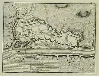 After having scouted the Russian fortifications at Grodno, Charles realized a frontal assault would be impossible. At the same time, the Russians would not let themselves be provoked out into the field. Charles instead decided to try and starve them out by crossing the Neman river on January 15, encircling the city from the east, forcing 15,000 Russian cavalry to withdraw.[34][35] In doing this he blocked the Russian communication lines, and also cut off their resources and supplies.[34] Smaller Swedish parties were sent towards Vilnius in order to prevent General Christian Felix Bauer from supplying the trapped Russians. One of these, commanded by Jan Kazimierz Sapieha and Józef Potocki managed to beat 3,000 Russians at the Battle of Olita on February 9.[36] Meanwhile, on February 7 Schulenburg had received word of Charles' crossing of the Vistula, and begun his march with the Saxon army in order to beat Rehnskiöld's smaller force near Poznań.[37] Rehnskiöld, however, did not wait to be defeated and instead strove to engage Schulenburg before the arrival of Augustus 8,000 men. By using a daring feint Rehnskiöld managed to lure Schulenburg into a more disadvantageous position near Wschowa (Fraustadt), where the two armies clashed on February 13.[38] Here, the Swedish general won a decisive victory killing or capturing up to 75% of Schulenburg's force.[39] Crippled by this setback, the main Saxon army had no choice but to retreat. The whole allied plan collapsed, as the opportunity for the allies to destroy Charles' army in the Polish–Lithuanian Commonwealth with a sweeping movement from behind, vanished.[40]
