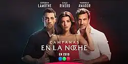 Campanas en la noche (English: Bells at Night) is a 2019 Argentine telenovela created by Lily Ann Martin and Jessica Valls for Telefe. It premiered on January 14, 2019 and ended on May 15, 2019. It stars Esteban Lamothe, Calu Rivero and Federico Amador. The supporting cast includes Eugenia Tobal, Rodrigo Guirao Díaz, Patricia Viggiano, Mariano Argento, Adrián Navarro, Martín Slipak, Laura Laprida, Clara Alonso, Franco Masini, Azul Fernández, and Bárbara Amaral. There is also the special participation of Héctor Bidonde, Jean Pierre Noher, and Noemí Frenkel.