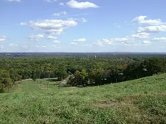 Campgaw Mountain is the northernmost ridge of the volcanically formed Watchung Mountains, along the border of Franklin Lakes, Oakland, and Mahwah in Bergen County, New Jersey, United States. Located almost entirely within the bounds of Campgaw Mountain Reservation, the mountain offers numerous outdoor recreational opportunities, including the only ski slope in the Watchungs.[3] Campgaw Mountain is commonly considered to be part of the greater Ramapo Mountains region,[4] but the flora and geology of the mountain is quite different from the surrounding area and more closely resembles the nearby Preakness Range to the south.[5]