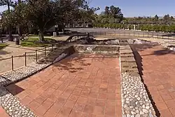 The foundations of the original adobe were unearthed beneath Lankershim Boulevard during construction of the Metro B Line subway. The parts of the foundations within the park are preserved as an exhibit, and the "footprint" of the foundations under the street and sidewalk is marked by decorative pavement.