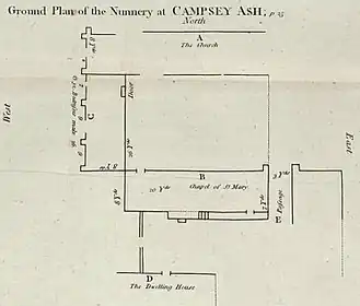 - ^ Knowles and Hadcock, Medieval Religious Houses, England and Wales, p. 227; 'Houses of Austin nuns: Priory of Campsey', (V.C.H. 1975).