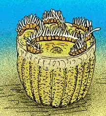 While initially considered to be a scyphozoan due to the fossil's medusoid shape, later investigation detected the presence of stereom plates with the calcitic cleavage pattern diagnostic of echinoderms.[2]