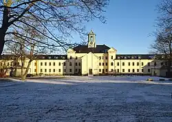 Campus Konradsberg is named after the psychiatric hospital Konradsberg which was erected 1855–1871[1] based on plans by the architect Albert Törnqvist and is thereby the oldest building in the area. Fredhälls folkskola, drawn by Paul Hedqvist, is located to the far left on Campus Konradsberg and was inaugurated in 1938. In the 1950s, additional school buildings were added to the elementary school. Konradsberg was used for psychiatric care until 1995.