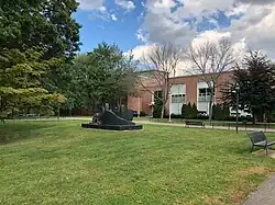 The Engineering Quad is the site of Stony Brook's engineering laboratories, classrooms and lecture halls. In 1993, a Korean sculpture was dedicated at the center of the quad.[57] The buildings on the perimeter of the Engineering Quad are Engineering, Light Engineering, Heavy Engineering and the Computing Center. The original Heavy Engineering building was built in the late 1960s but underwent a renovation in 2006 that added 45,000 square feet to the already 68,000-square-foot structure. The expansion added labs, administration offices, student lounges and a glass atrium.[69]