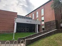 Frey Hall, located between Harriman Hall and the Frank Melville Jr. Memorial Library, is the only building on the Stony Brook campus that is solely dedicated to classroom space.[50] It opened in 2013 and was named after Robert J. Frey, a professor at Stony Brook and a former managing director at Renaissance Technologies, in recognition of his family foundation's gifts to the university. The building contains three large lecture halls on the first floor with roughly 250 capacity, and over two dozen classrooms, including a 193-seat active learning classroom and a 68-seat testing center with computers.[51][52] The Old Chemistry building was shut down in 2011 in order to renovate the structure into Frey Hall.[52]