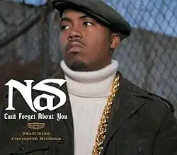 "Can't Forget About You" is the second and final single from American hip hop artist Nas' 2006 album Hip Hop Is Dead, released on January 23, 2007.[1] It features Chrisette Michele, and the track is produced by will.i.am.[2] Its lyrics deal with Nas reciting various unforgettable memories such as Mr. T becoming a wrestler and when DJ Jazzy Jeff & The Fresh Prince won the first Rap Grammy. Its b-side is "Hustlers" featuring The Game and Marsha from Floetry. It features a sample of "Unforgettable by Nat King Cole. The song reached number forty-six on the Hot R&B/Hip-Hop Singles & Tracks chart, making it, to date, his highest charting R&B song since "I Can" peaked at 7 in 2003.