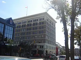 The Canada Building (built in 1913) is a historic eight-story office block in the Central Business District of Saskatoon, Saskatchewan, Canada. The building is 35.05 m (115.0 ft) in height featuring red granite facing on the base, with terra cotta details on the lower two floors and cornice near the roof.[1] The office building features large bison heads flanking the main doorway.
