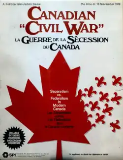 Canadian Civil War (French: Guerre Civil Canadienne) is a board game published by Simulations Publications Inc. (SPI) in 1977 shortly after the separatist Parti Quebecois came to power in Quebec under René Lévesque. The game simulates a hypothetical political struggle between factions, some of them seeking to redefine the terms of the Canadian confederation, others seeking to maintain the status quo.