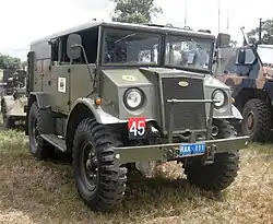 Most CMP trucks were manufactured by the Canadian Chevrolet division of General Motors, and Ford Motor Company of Canada. The two manufacturers quickly ramped up their Canadian production utilizing the reserve production capacity that had remained idle ever since the Great Depression, and through an unusual act of collaboration between the two rival companies — the use of interchangeable components. A smaller number of CMP trucks were assembled from Canadian-made chassis and parts, typically first built on Canadian production lines, then broken (knocked) down, crated, shipped overseas, and re-assembled in Britain, Australia, New Zealand, South Africa (2,600), India (9,500), Italy, and Egypt.[2] Following British convention, CMP trucks had right hand drive even though most of them were built in Canada, which primarily used left-hand drive vehicles. The CMP specification proved versatile, and it formed the basis of a wide variety of different truck types and even some armoured vehicles. There were no less than ninety types of CMP army vehicles on twelve different chassis, including three different types of wireless trucks, four ambulance types, and thirteen field-workshop vehicle types.[4] In Australian service (almost always with the No. 13 cab), the vehicles were known as the "Chev Blitz" or the "Ford Blitz".