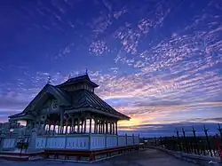 The memorial is primarily a reconstruction of the Summer Pavilion, a gazebo built for the Speaker of the House of Commons in 1877 by Thomas Seaton Scott and demolished in 1956.[2][1] Called the Police Memorial Pavilion, the reconstruction is located behind the Parliament Buildings on the northwest corner of the Parliament Hill grounds, overlooking the Ottawa River.[1][6]