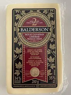 Balderson "Royal Canadian Cheddar". Canadian cheddar is a particularly smooth and creamy cheddar cheese that holds a balance between flavour and sharpness.[114]