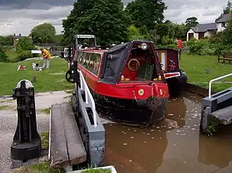 The Cheshire Ring is a popular canal cruise which includes six of the canals in Cheshire. Because it takes approximately a week to complete, it is suited to narrowboat holidays which start and return to the same location. The route has 92 locks and is 97 miles (156 km) long. It is popular because it offers a contrast between the city centre of Manchester, views of the Peak District, and the Cheshire Plain.[1]