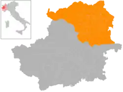 Canavese (French: Canavais; Piedmontese: Canavèis) is a subalpine geographical and historical area of North-West Italy which lies today within the Metropolitan City of Turin in Piedmont. Its main town is Ivrea and it is famous for its castles.