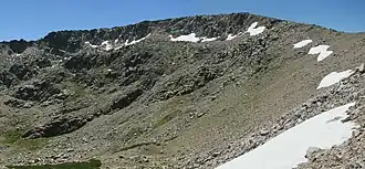 Canchal means scree; the name Ceja (literally eyebrow) comes from the peculiar shape of the snowfield located below the summit on the North face of the mountain .