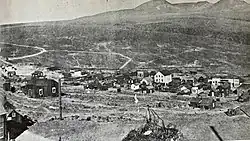 The Northern Belle produced and shipped approximately $15 million in silver.[2] The town had two hotels, numerous stores, multiple saloons, doctors and lawyers and other businesses. The post office was named Candalara from August 1876 until November 1882 and then named Candelaria from November 1882.[6] In 1882, the completion of the Carson and Colorado Railroad to Candelaria helped to alleviate the water shortage. With available water, the town continued to thrive for ten years. In 1893 an economic depression in the U.S. halted investment in the mines and many of the mines closed. After that, the town was declined with the post office closing in January 1935.[3][5][6]