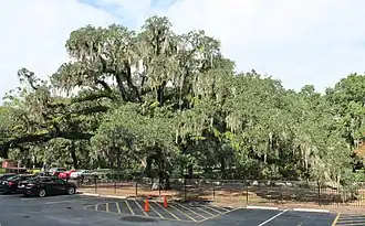 In 1984, the Savannah Tree Foundation secured the nation's first conservation easement on a single tree and a 6,804-foot (2,074 m) easement was established to protect the Candler Oak from loss to development. In 2001, the Georgia Urban Forest Council designated the tree as a Georgia Landmark and Historic Tree.[2] In 2012, Savannah Law School purchased the historic property on which the Candler Oak resides. The law school tried to take measures to protect the tree by putting up fences, reserving space for the tree's lowest branches, and placed the tree under security surveillance. The tree also served as the law school's logo. The law school closed and is now owned by Savannah College of Art and Design. [3]