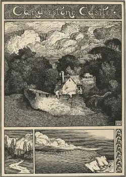 In the 12th century, Candleston manor passed to the St Quintin lords of Talyfan and Llanbleddian; The Cantilupe family are considered Candleston's first tenants.[2] Although there are no records to show that the de Cantilupes were at the site in the 12th century, it is believed that the name Candleston is derived from their name, variously spelled Cantulupo, Cantilupo, Cantelo. In 1596 it was called Cantelowstowne and in 1635 Cantloston.[2][3] It was Tregantlow in Welsh, Tref or Tre meaning town.[2][4]