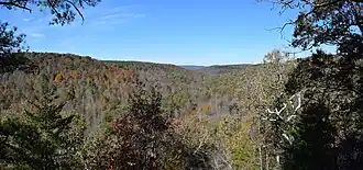 Cane Creek Canyon Nature Preserve is a 413-acre (167 ha) private nature preserve in Colbert County, Alabama, south of Tuscumbia that opened in 1986 and is owned by Jim and Faye Lacefield.[2] The couple purchased 40 acres (16 ha) of land in 1979 and gradually added land, growing to over 700 acres (280 ha). The land's features include waterfalls, wetlands, streams, glades, cliffs, and the canyon.[3] The preserve, which is open to the public, has 15 miles (24 km) of hiking trails, and access to the preserve is free.[4]