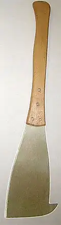A cane knife is a large hand-wielded cutting tool similar to a machete.[1] Its use is prevalent in the harvesting of sugarcane in dominant cane-growing countries such as Peru, Brazil, Colombia, Australia, South Africa, Ecuador, Cuba, Jamaica, the Philippines and parts of the United States, especially Louisiana and Florida, as well as Hawaii.