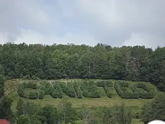 The Canisteo Living Sign is a historic civic project that was built by Ed Childs and Harry Smith, donated to the Canisteo School District, that also served as a navigational aid, located at Canisteo in Steuben County, New York. The sign consists of a set of 260 pine trees that spell out the name "Canisteo." They occupy a space approximately 90 feet (27 m) long and 300 feet (91 m) wide. The sign was originally laid out in 1933.[2] The sign was cleared in April 2016 and subsequently replanted beginning in May 2016 due to a number of dead and dying trees.[3]