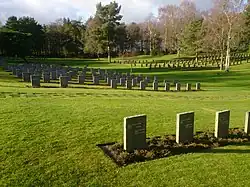 In the same locality as this cemetery, the Commonwealth Cannock Chase War Cemetery contains 286 German war graves, primarily of those who died in a local prisoner-of-war camp and hospital in World War I but also including graves of 58 Germans who had been reinterred here in 1963.[7]