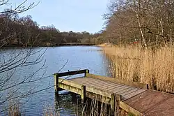 The ponds are a well-known site for Mandarin ducks,[7] reed warblers and a pair of nesting mute swans.