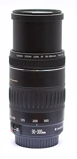 The Canon EF 90–300mm f/4.5–5.6 lens is a telephoto zoom lens for Canon EOS single-lens reflex cameras with an EF lens mount. There have been two versions available: one with and one without USM.