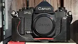 The Canon New F-1 is a professional 35 mm single-lens reflex camera that replaced the F-1n (an upgraded F-1) as Canon's top-of-the-line 35mm single-lens reflex camera in September 1981. Like the earlier models, the New F-1 takes FD-mount lenses. Although no date has ever been confirmed, it is thought that the last New F-1 was made in 1992. It was officially discontinued in 1994, and factory support ended in 2004.