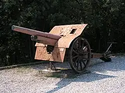 After the end of World War I, France sold or gave many Schneider 105 mm guns to various other countries, including Belgium, Italy, Poland, and Yugoslavia. In Italy, the 105 mm was re-designated the Cannone da 105/28 mod. 13 and saw service until 1943.[6] Guns were also produced under license in Italy, starting from September 1914, by Ansaldo.[7] Poland also used new model of Schneider's gun with a longer barrel and split trail, called the wz. 29, which was in fact a completely different weapon; both were in service at the beginning of WW II in 1939. In 1939 Poland had 118 of wz. 13 guns and 124 of wz. 29 guns, used in Heavy Artillery Detachments.[8]