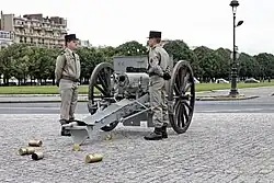 The Canon de 75 modèle 1897 is still used in France as a saluting gun.[30] When the French Army discarded its 105 HM2 howitzers to replace them with MO-120-RT mortars,[31] only 155 mm artillery pieces remained, for which no blank cartridges were available. The Army therefore recommissioned two Canon de 75 modèle 1897, then located at the Musée de l'Artillerie de Draguignan. They are used for state ceremonies.
