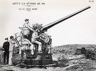 ![]() A Canon de 90 mm Modèle 1926 on a land mount. | |