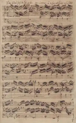 The registration of the five-part Variatio V is more complicated: it initially involves two manuals and pedal; at the concluding pedal point there are six parts played in organo pleno on a single manual with pedal, possibly with octaves transposed in some doubled parts.[33][30]