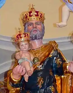 168. ^ Saint Joseph within the icon of the Holy Family. The image of Saint Joseph wears a golden ring donated by Pope John XXIII in 1963, accompanied with a personal letter of "consecration".