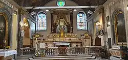 164. ^ Pontifical letter of decree Aedes Deo Sacras granted to the Archbishop of Malines, Monsigneur Pierre-Lambert Goosens on 28 April 1903, authorizing the formal imposition of a golden diadem on the head of the Sacred Heart of Christ. Signed by Cardinal Aloysius Luigi Macchi and notarized by the Sacred Congregation of Rites. — Vatican Secret Archives. — Leonis XIII, Papam — Dilecte Fili Noster, salutem et Apostolicam benedictionem. Aedes Deo Sacras, arte non minus quam cultu ac fidelium concursu celebratas, praecipuis honoribus ex more institutoque Romanorum Pontificum ditare libenti quidem animo solemus. Novimus itaque in tua ista dioecesi Mechliniensi, idest in sub- urbio Antverpiae civitatis vulgo Berchem nuncupato, insigne extare templum Sanctissimi Iesu Cordi dicatum, et ab hac Apostolica Sede titulo Basilicae minoris auctum, cui pia filiarum ab eodem Sanctissimi Corde Congregatio inservit, et quod christianus populus summa religione veneratur. Cum vero quintus et vigesimus annus ab hoc extructo templo propediem expleatur, Tuque, dilecte Fili Noster, hac data occasione instanter a Nobis petieris, ut ibidem positam Sanctissimi Iesu Cordis imaginem habeas coronandi facultatem; Nos, quo tam frugifer cultus magis magisque augeatur in dies, piis huiusmodi votis censuimus obsecun- dandum. Quare omnes et singulos, quibus hae Nostrae Litterae favent a quibusvis excom m unicationis et interdicti aliisque ecclesiasticis sententiis, censuris ac poenis, si quas forte incurrerit, huius tantum rei gratia absolventes et absolutos fore censentes, tibi, dilecte Fili Noster, praesentium tenore committimus, ut dictam Sanctissimi Iesu Cordis imaginem in memorato templo Suburbii Antverpiensis existentem die per te eligendo sollemni ritu, servatisque servandis, Nostro nomine et auctoritate coronare licite queas. Quo autem sollemne huiusmodi Sacrum in spirituale quoque Christifidelium bonum cedat, omnibus ac singulis utriusque sexus fidelibus, qui vere poenitentes et confessi ac S. Communione refecti, ipso Coronationis die, vel in posterum diebus eiusdem Coronationis anniversariis praefatum templum visitaverint, ibique ante supradictam Sanctissimi Iesu Cordis imaginem pro Christianorum Principum concordia, haeresum extirpatione, peccatorum conversione atque Sanctae Matris Ecclesiae exaltatione, pias ad Deum preces effuderint, Plenariam omnium peccatorum suorum indulgentiam et remissionem, quam etiam animabus Christifidelium, quae Deo in charitate coniunctae ab hac luce migraverint, per modum suffragii applicari posse con- cedimus ac largimur. Non obstantibus contrariis quibuscumque. — Datum Romae apud Sancti Petrum sub annulo Piscatoris die 28 Aprilis 1903, Pontificatus Nostri anno vigesimo sexto. — Sigillium Vaticanus — Sacra Congregatione Rituum — Aloysius Cardinalem Macchi.