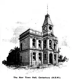 - ^ "Canterbury Town Hall". Evening News. No. 6831. New South Wales, Australia. 12 April 1889. p. 3. Retrieved 7 September 2018 – via National Library of Australia.