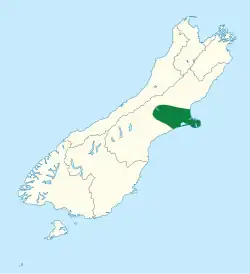 | Distribution of the Canterbury spotted skink on a map of the South Island Known native range