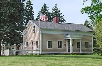 Many families whose houses are included in this MPS were among the first wave of settlers purchasing property in Canton. Timothy Sheldon built his Sheldon Inn in 1825 shortly after he arrived in the area. Moses Bradford (Benjamin's brother) also arrived in 1825, and John Patterson arrived in 1826. Elisha Kinyon, Orrin's father, bought land in 1831; both Orrin Kinyon and Benjamin Bradford purchased their own farms in 1835.[2] These families, as were the bulk of Canton's early settlers, traveled from New York and New England to Michigan.