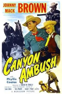 Canyon Ambush is a 1952 American Western film directed by Lewis D. Collins and written by Joseph F. Poland. The film stars Johnny Mack Brown in his last film for Monogram, Lee Roberts, Phyllis Coates, Hugh Prosser, Dennis Moore and Marshall Reed. The film was released on October 12, 1952, by Monogram Pictures.[1][2][3]