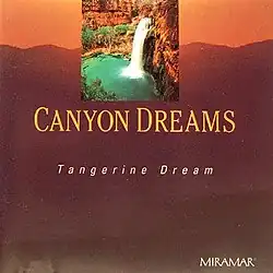 Canyon Dreams is the fortieth major release and (although mostly recorded in 1986) it was released as the fourteenth soundtrack album by German band Tangerine Dream. It was recorded in 1986 and released in 1991 on compact disc and compact cassette formats.[2] The music was written as a sound accompaniment for an eponymous scenic video film about the Grand Canyon by Jan Nickman, released by the record label Miramar in 1987 on VHS, Betamax and LaserDisc. The album's tracks are divided into various episodes and related to the titles of the cuts.
