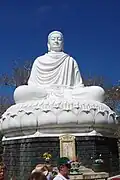 Before the area was settled by ethnic Vietnamese, the Khmer people practiced Theravada Buddhism. The area has some 14 Catholic wards with active services.[30] A notable monument in the city is the Christ of Vũng Tàu, a large statue built by Vietnam's Catholic minority. It was completed in 1974, with the height of 32 metres and two outstretched arms spanning 18.4 metres. It is among the tallest statues of Christ in Asia.[31]